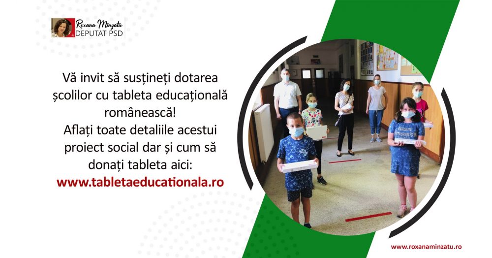 Am donat aceste tablete în cadrul proiectului social şi tehnologic lansat în mai 2020 împreună cu europarlamentarul Victor Negrescu şi vă invit să aflaţi cum puteţi folosi acest proiect pentru a dona către alte şcoli sau comunităţi accesând siteul www.tabletaeducationala.ro sau contactând RoboHub Bucharest.